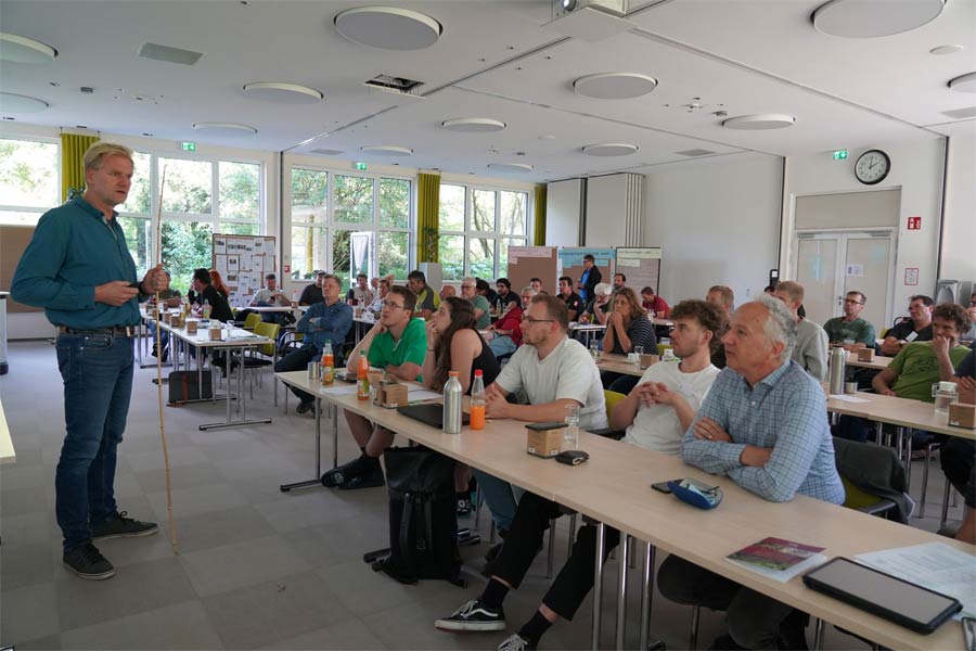Baumsachverständiger Öbuv. Dipl. Ing. Marc Wilde, Lengerich, stellte mit seinem Vortrag „Kreative Lösungen zum Schutz von Bäumen an Baustellen" die Problematik des u.a. Glasfaserausbaus und den damit verbunden Beschädigungen an Bäumen im öffentlichen Raum dar. „Wenn wir nicht konsequent den Wurzelraum der Bäume schützen, werden uns in den kommenden 5-10 Jahren zunehmend Bäume im Straßenraum umstürzen", so Marc Wilde. Er rät Kommunen und Gemeinden dazu, den Baumschutz auf Baustellen den privaten Bauträgern als Auflage vorzugeben, diesen als Leistungsposition mit in die Ausschreibung aufzunehmen und die fachgerechte Ausführung zu kontrollieren.